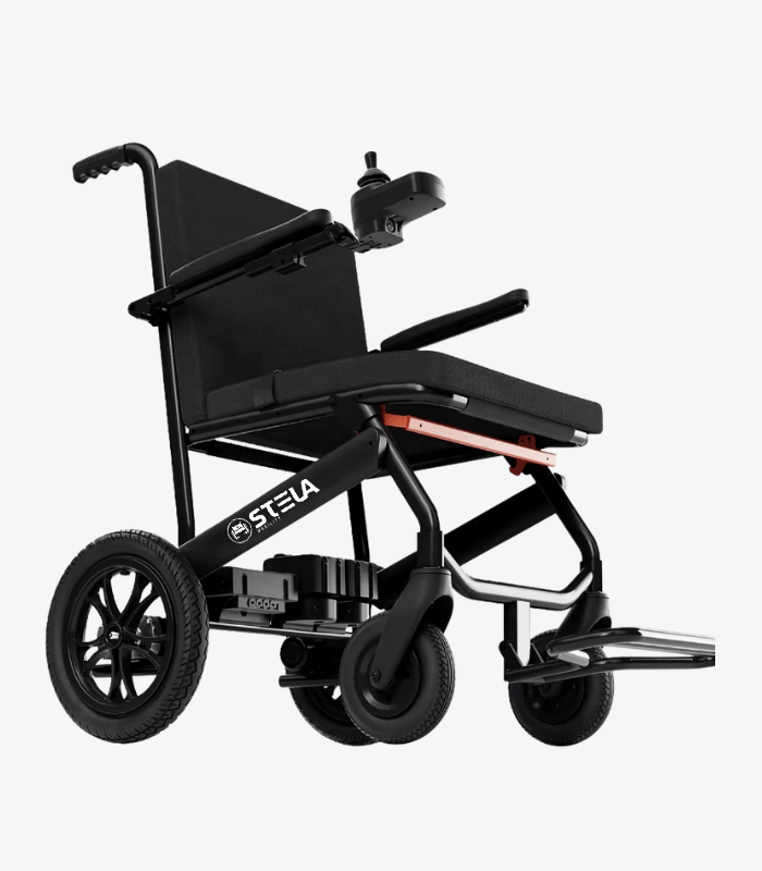An ultra-lightweight electric wheelchair crafted with a premium carbon fibre and aluminium alloy frame. The Stela eFold10 is foldable, portable, and equipped with dual 300W motors, making it the perfect solution for elderly and disabled users who need independence without compromising on comfort or safety.